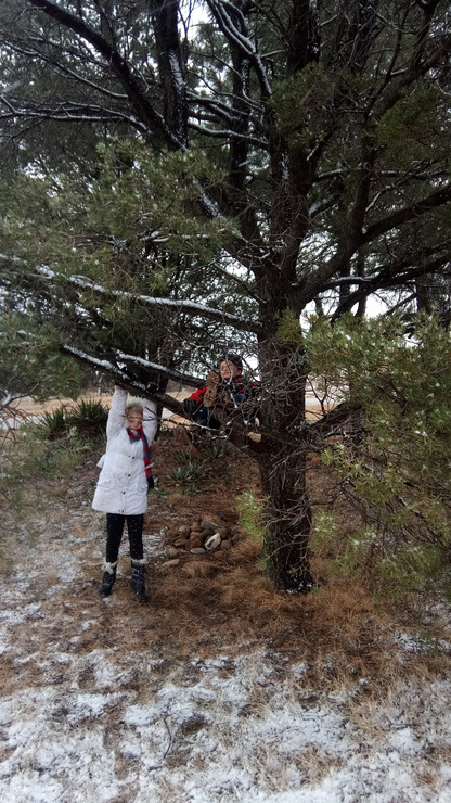 It is snowing out here in the land of nowhere my cubs were having some tree time.