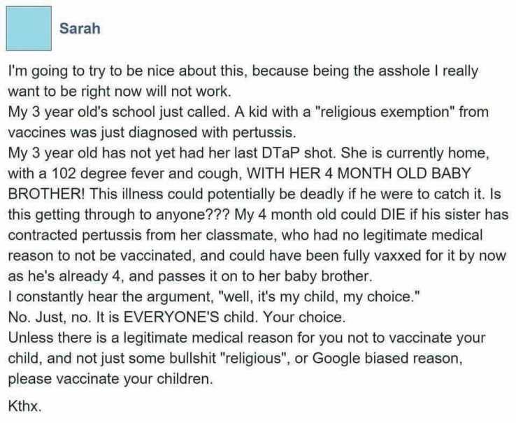This is horrifying that religious and anti vaxxers can have such a negative impact and not care. Their stupidity is monumental. I am not sorry if I have insulted anyone. There is no conspiracy.