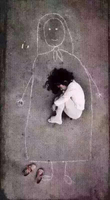 In Iraq, a little girl drew a picture of her mother on the floor of her orphanage. She carefully took off the shoes, lay down on mother's chest and fell asleep... I really don't know how to use human language to interpret such a picture.