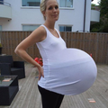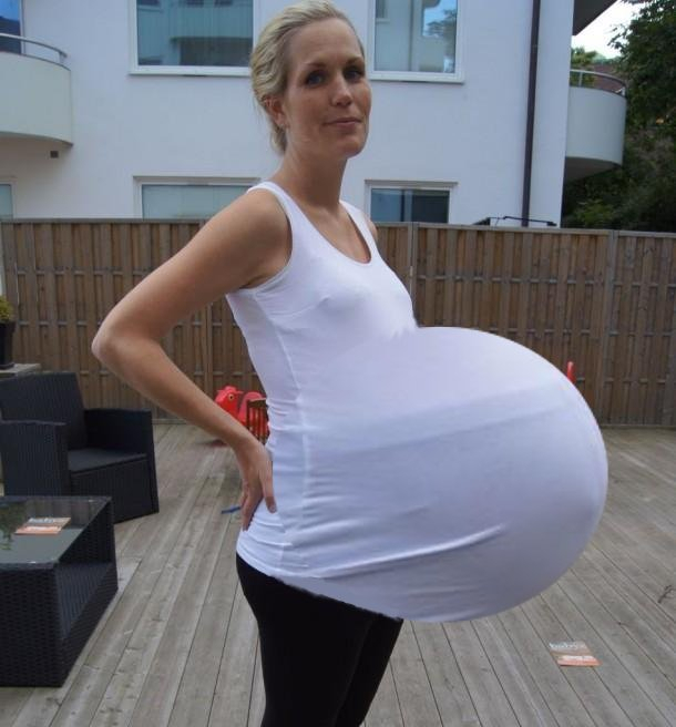 Can you imagine carrying this around? Is she smuggling beach balls under her blouse??