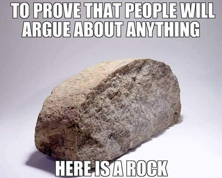 I'm sure many could argue about a rock. Today I went to Mobil to get some Powerball tickets and I made a mistake in my numbers. I was telling the clerk about it saying it was my mistake. She must be trained to argue because she took it that I said it was her mistake.