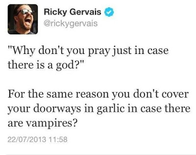 Yes, Gervais is a rather vocal atheist. You don't want to preach around him. Lol