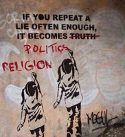 Politics at least has way more potential to be fact-based; not all politics is or must be lies. Since the alternative to political systems is anarchy, we'll always have to fight that battle. But religion contributes nothing and it can die an organic death.