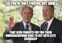 Long established tradition, Yale automatically accepts the children of any US senator or congressperson. And, usually, of governors and the president. Tony Blair’s son got in and he came over to teach a seminar on British government, a coincidence I am sure. Legend has it that if you have a relatives name on a building, you are in.