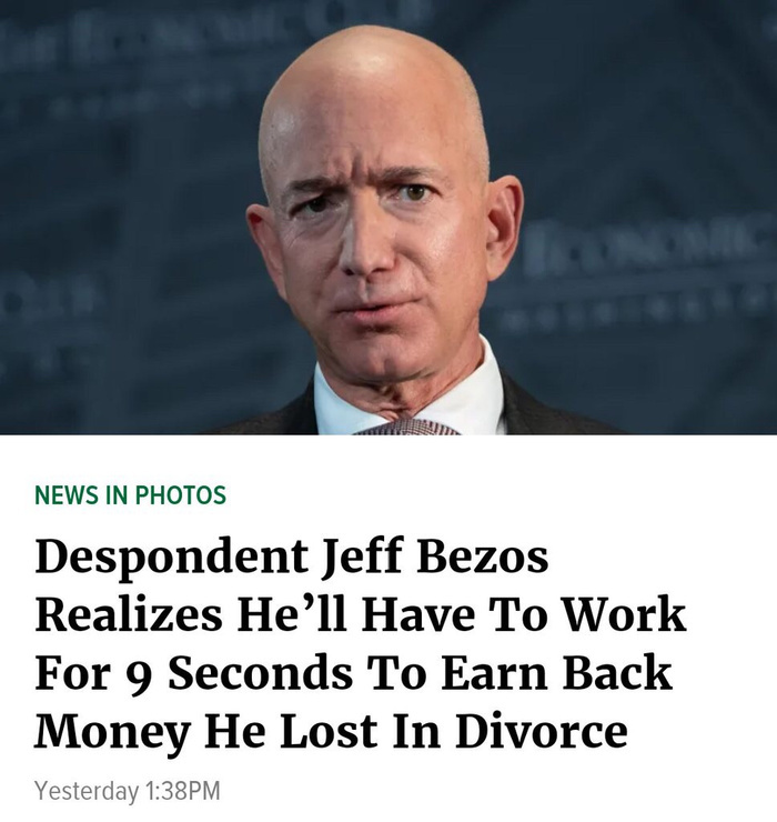 I read that $88,000 to Jeff Bezos is equivalent to $1 to the rest of us.