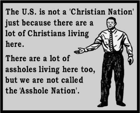 Daily Blasphemy: America is a “christian nation”? My goddamned ass, it is. You’ll agree, the litmus test for being a christian nation is whether it actually follows Matthew 28:19 “Therefore go and make disciples of all nations, baptizing them…and teaching them to obey everything I have commanded you.” And, happily, America misses that mark by a red-state country mile. The first part of this litmus test is whether you find christ anywhere in the U.S. Constitution. Nope, no christ there. Only a meaty separation of church and state. But surely if America had a second shot at writing a constitution, they’d put the Almighty in that one, right? Especially if it was written for a for another country, a la Matthew 28:19? But check the Japanese Constitution, written by McArthur’s staff after WWII, for that ever-elusive savior. No sign of Jeebus there, either. Just a bunch freedom from religion stuff…from folks who saw the clear link between Shinto piety and military genocide. But if we had a third shot at writing someone’s constitution, I dunno, say Iraq’s? Surely, we’d throw a bone to that sorry Son of a Bitch, inflicting the boring-assed gospel on the muslim world? Nope. Turns out even the U.S. military--under George W. Bush no less--drops jesus like a hot rock when it comes to good government. It’s almost like the U.S. military knows something that christian America doesn’t: that christ is worthless where actual problem-solving is required….