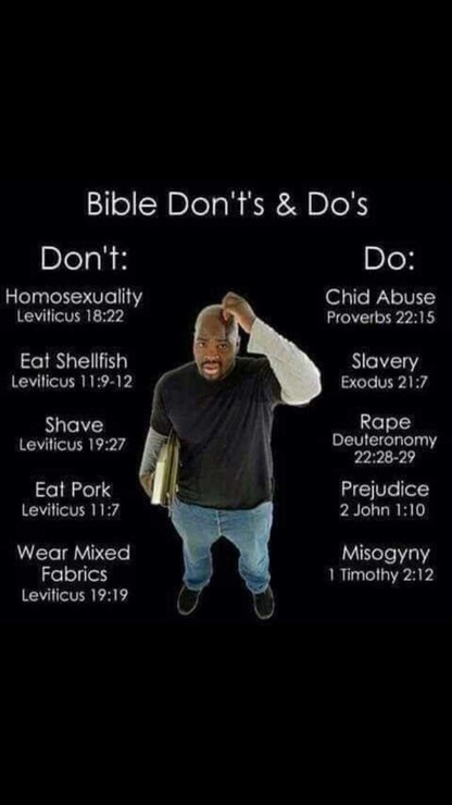 @ShadowAmicus using bits of it is to cherrypick and that is obviously what every religious person is doing...still...it’s a dangerous book to use, while searching for moral parameters, since is so incoherent and even immoral in many parts.