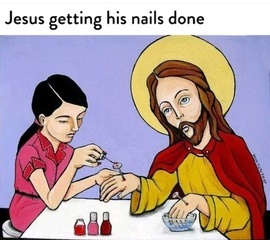 Jesus getting his nails done.