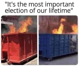 The blue dumpster fire has slightly less poisonous fumes, so I guess we are supposed to vote for that one.