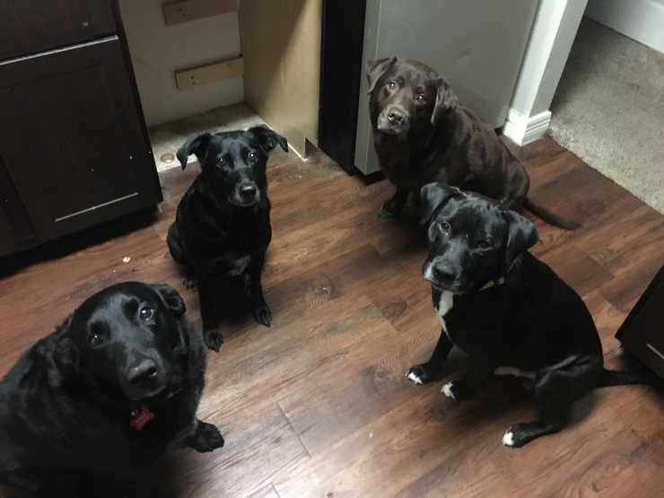 From left: Zeppelin, Karma, Fudge, and Dilbert