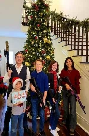 The photo, which remained on the congressman's Facebook page as of Monday night, shows his wife and two of his three children smiling and holding firearms in front of a Christmas tree.