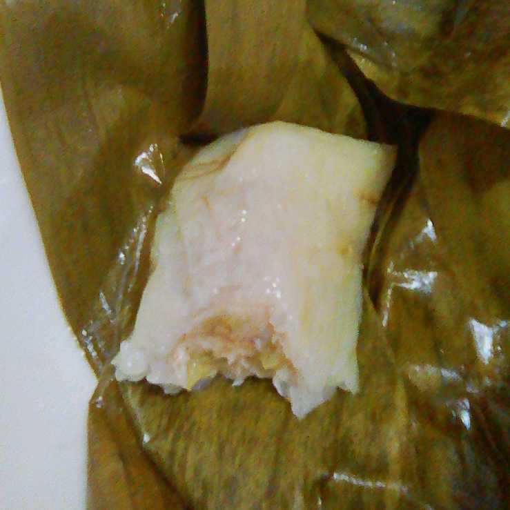 Banana/berries/sticky rice mashed together and roasted in a roll of banana leaves. Sounds like a great treat ! I would love to find a recipe for that !