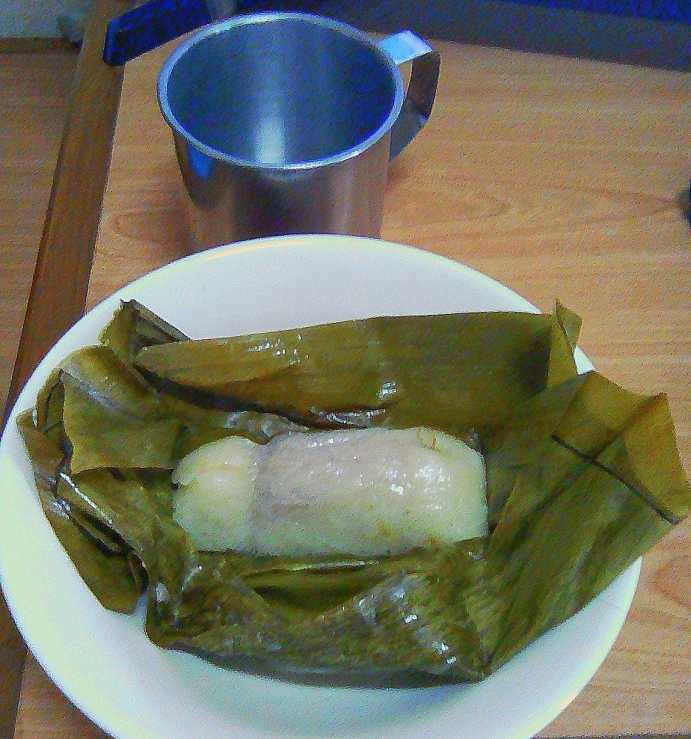 I wanted a Thai snack often sold by roadside vendors..banana/berries/sticky rice mashed together and roasted in a roll of banana leaves.