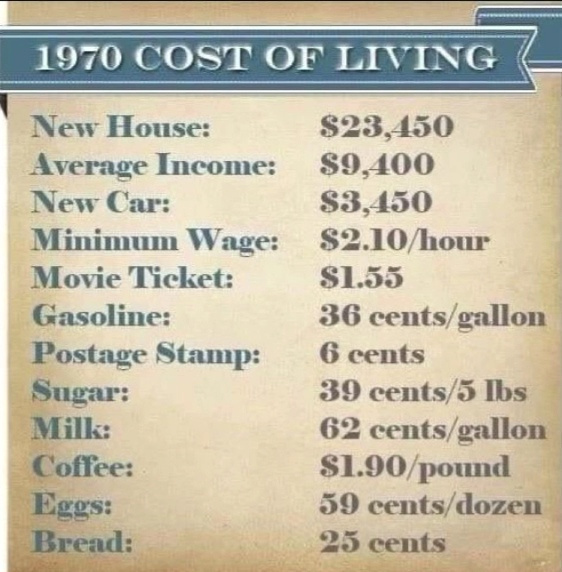 But in the UK in 1970, my father bought his second house for us in Billingham for £3000 and at the time we had just switched to decimal currency from the old imperial coinage (240 pennies to the pound) and everyone was complaining that they had been robbed as prices had massively (apparently) raised.