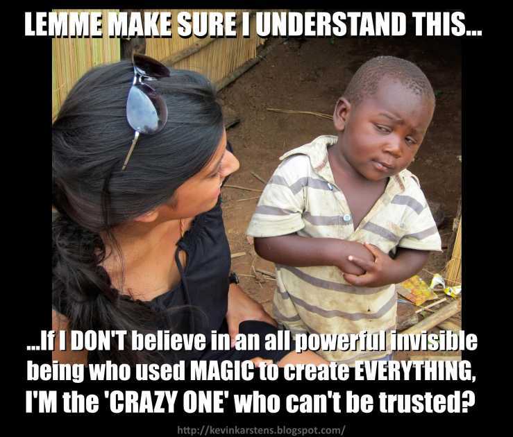 How horrific is this, really? It should be the exact OPPOSITE in the 21st damned century...the very notion thatn if you do NOT believe in LITERAL MAGIC, you are viewed as 'crazy' is...CRAZY.